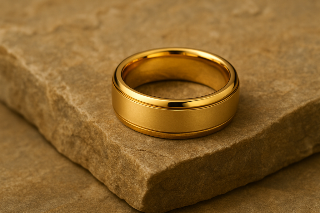 Perpaduan emas kuning dan putih (atau rose gold) menciptakan efek visual yang dinamis dan modern.