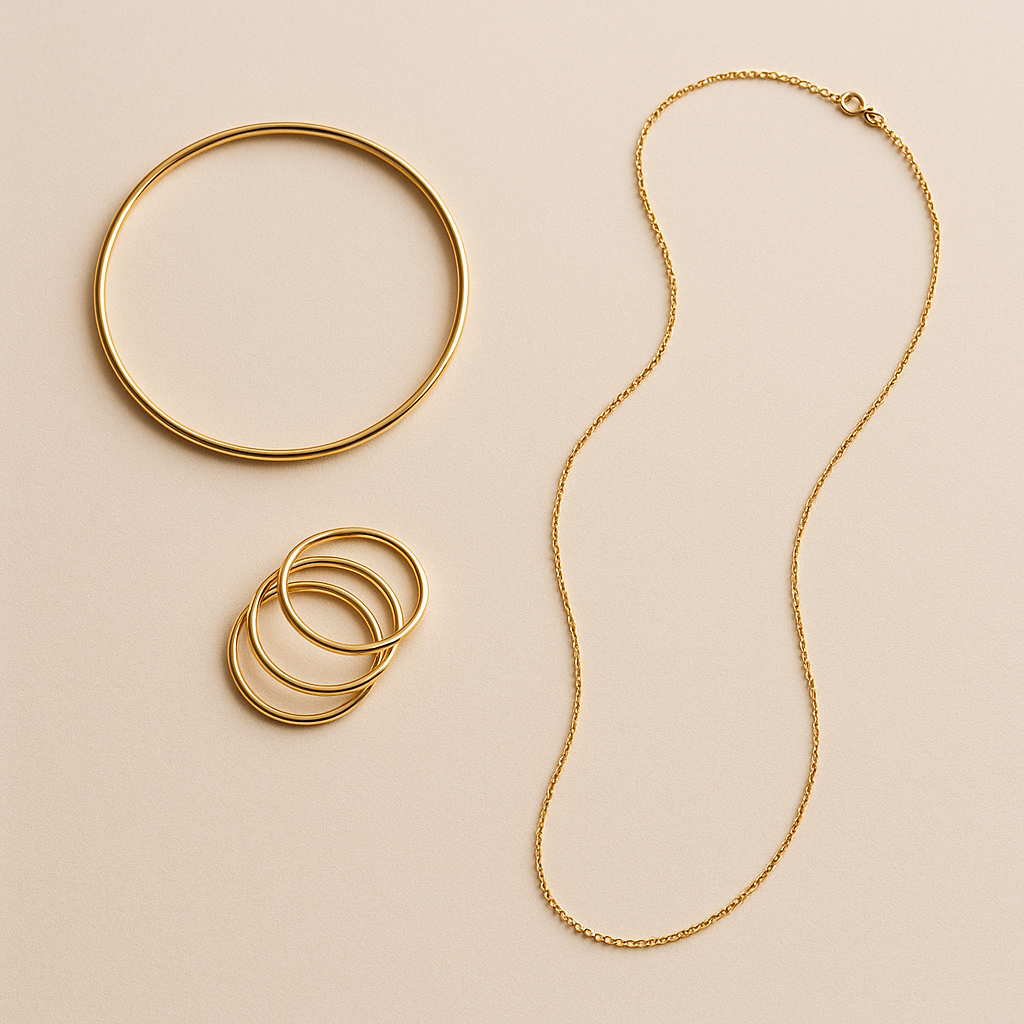 Tren perhiasan emas tahun ini didominasi oleh desain minimalis: gelang tipis, cincin stackable, serta kalung rantai sederhana yang mudah dipadukan dengan berbagai gaya busana. Unsur minimalis menghadirkan kesan elegan dan timeless, cocok untuk segala usia.